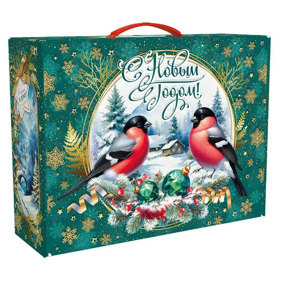 Сладкий подарок в картонной упаковке "Чемодан Снегири" 800г Стандарт.
