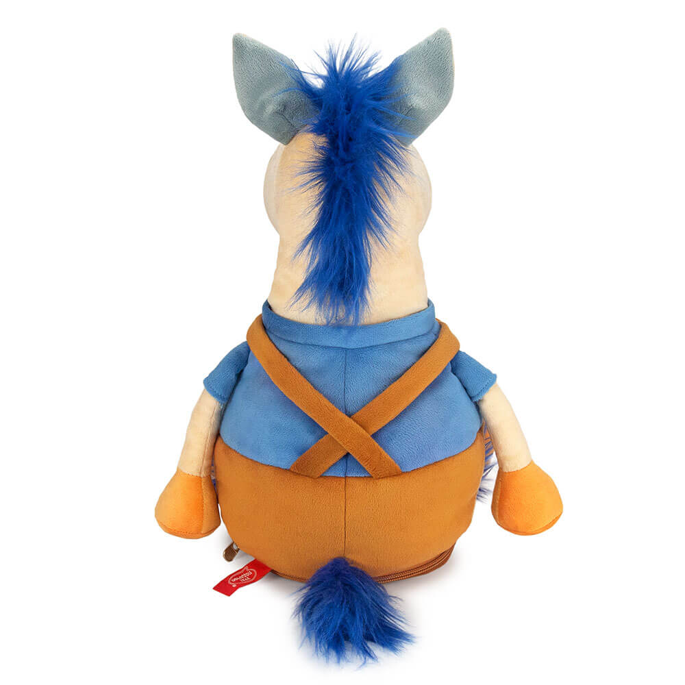 Мягкая игрушка Лошадь Фред сшита из мягкого софта бежевого цвета. У лошади коричневый костюм с желтыми звездочками и синяя футболка, которая сочетается с синей гривой. Внутри мягкой игрушки потайной карман на молнии со сладким подарком. Набор конфет 800г Стандарт.