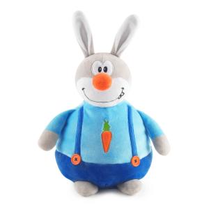 Текстильная упаковка игрушка кролик Славик в сине‑голубом костюмчике.